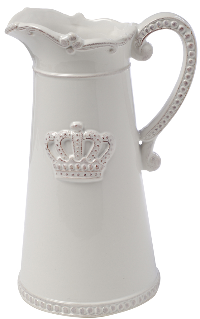 Небольшой белый кувшин Aisha классической формы с рельефным декором в виде короны подарит вам эстетическое наслаждение и позитивный настрой. Несмотря на минимальный декор, он выглядит очень элегантно и вполне подойдет для украшения гостиной, кухни и дачного стола, из него очень удобно наливать молоко или сливки. Кувшин можно приобрести отдельно или в дополнение к другим предметам коллекции.