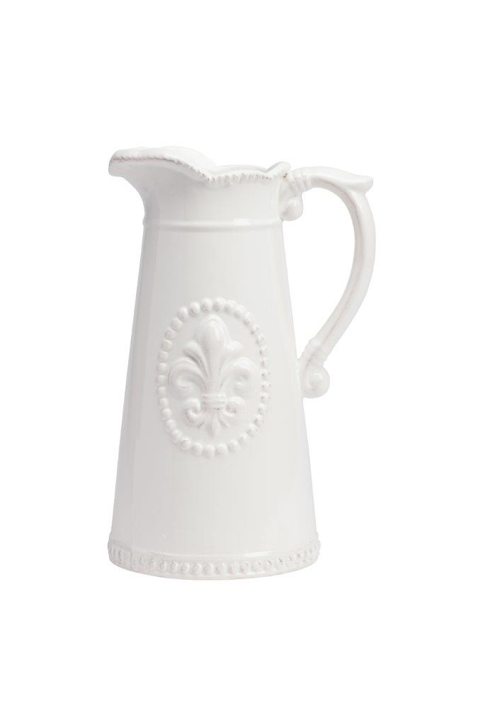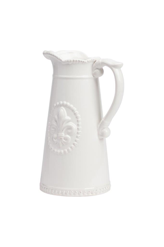 Кувшин Tess Cream выполнен из грубой керамики, в кремовом цвете. Особенностью декора кувшина является рельефное изображение геральдической лилии, ручка выполнена в виде завитка, это придаёт изделию особую торжественность. Кувшин можно использовать как вариант для подарка в сочетании с другими столовыми приборами.