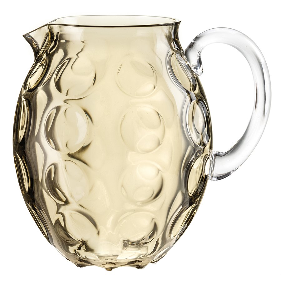 Прозрачный кувшин Venice станет прекрасным украшением стола. Обтекаемые формы, эргономичность и эффектная игра света в толстом стекле – настоящее произведение искусства в вашем доме. Высота кувшина 21 см – оптимально подходит для сервировки холодных напитков, а также для цветов. Изделие выполнено из органического стекла SMMA – одного из самых практичных современных материалов, который не содержит вредных примесей и бисфенола-А.