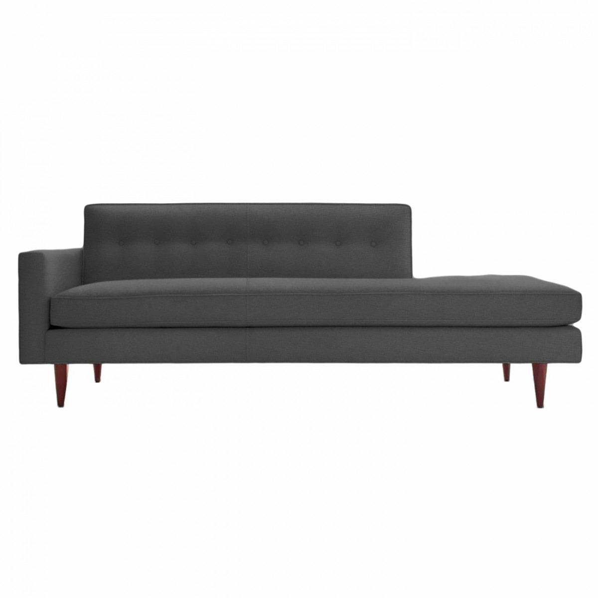 Предлагаем вашему вниманию: Диван Bantam Studio Sofa микровелюр прямой темно-серый. Диван Bantam Sofa Grande — это современный, стильный и изысканный предмет для вашего дома, который непременно понравится всем членам семьи и подчеркнет ваш непревзойденный вкус в оформлении помещений. Приятный тёмно-серый цвет обивки и деревянные ножки позволяют мебели удачно вписаться в общую картину, а мягкое сиденье и удобная спинка подарят незабываемые минуты отдыха. Современная форма модели прекрасно будет сочетаться с предметами в стиле минимализма или хай-тека. Лаконичный контур деревянных ножек и теплый серый оттенок тканевой обивки наполнят пространство внутренней гармонией и комфортом. Диван декорирован круглыми мебельными пуговицами, которые придают ему уютности и изысканности.