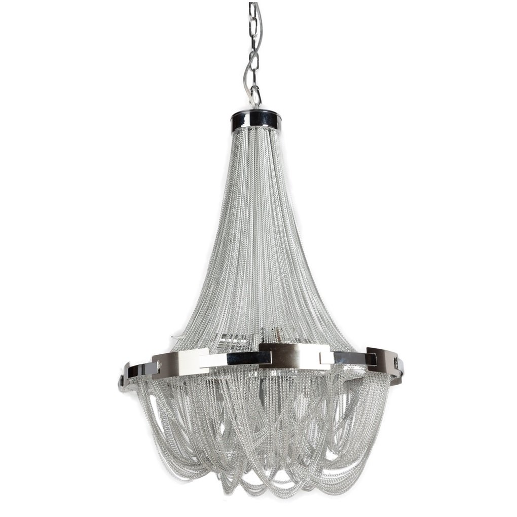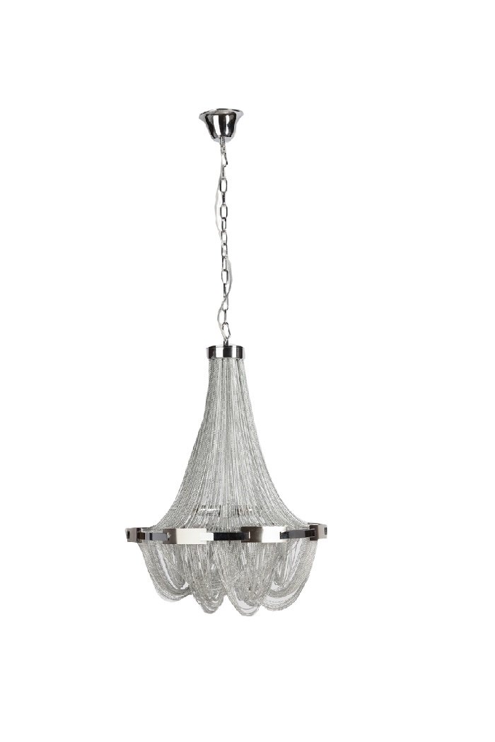 Люстра Firenzo. Уникальная и бесконечно красивая люстра Firenzo, словно привезенная из аристократической Европы, непременно добавит роскоши и шика вашему дому. Оригинальное исполнение придает ей неповторимость и изящность: алюминиевые цепочки серебристого цвета создают эффект множества хрустальных ниточек, соединенных стальным кольцом. Такое дизайнерское решение гарантирует мягкий приглушенный свет в помещении и дополнительный уют. Предназначена для использования со светодиодными лампами.