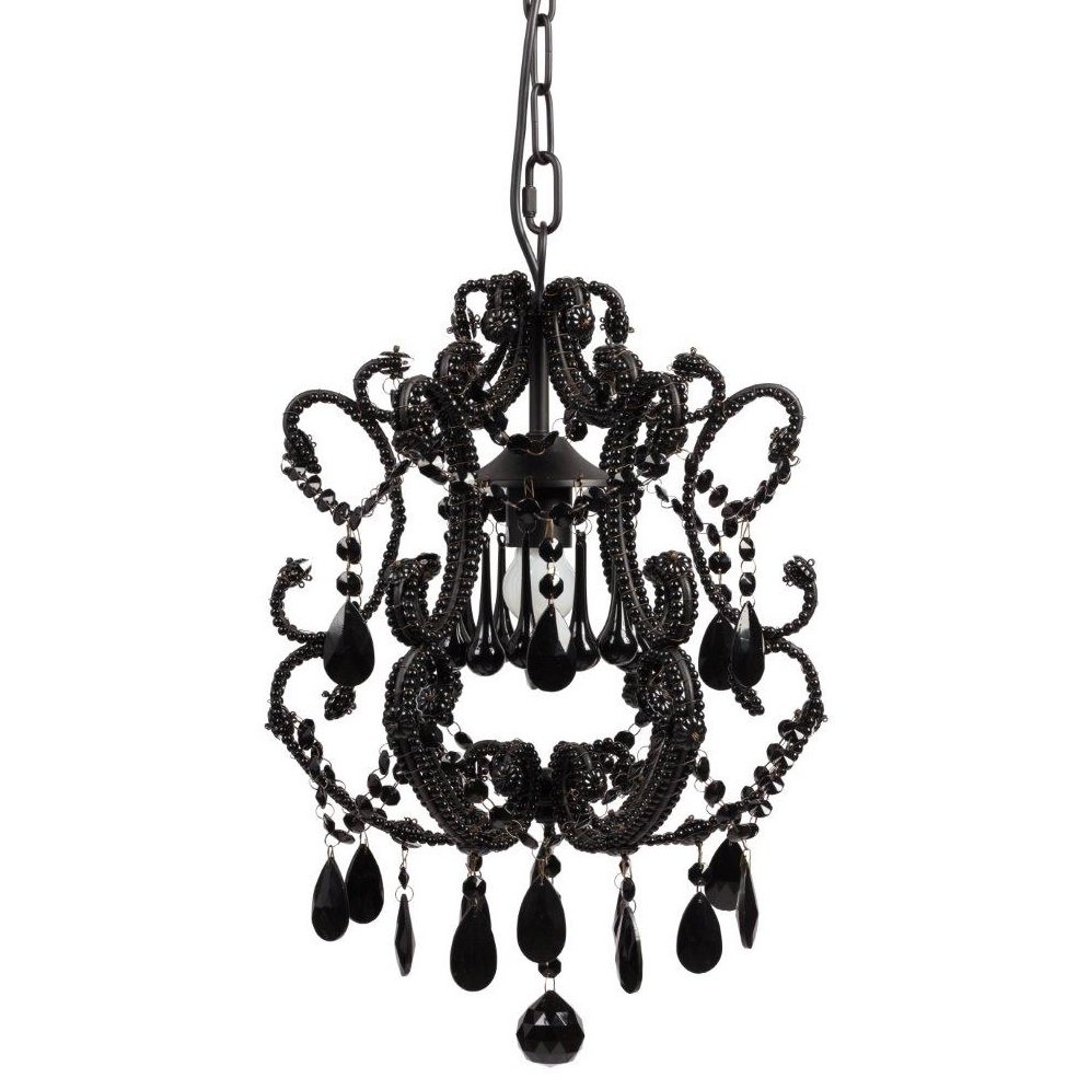 Люстра Glamour. Необычная форма однорожковой металлической люстры Glamour образована геральдической вязью кованого металла, красиво сочетающимися с чёрными хрустальными подвесками, гармонично будет смотреться в стиле модерн, ампир, хай-тек. Предназначена для использования со светодиодными лампами. Длина провода 70 см.