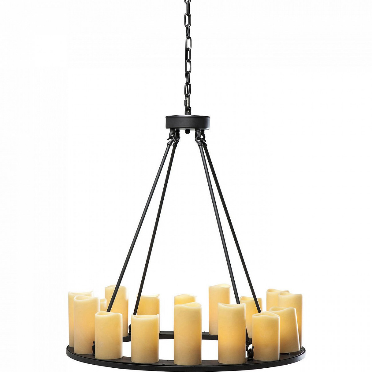 Этот великолепный подвесной светильник заливает комнату романтическим отблеском свечей. Его изысканный каркас из черного лакированного железа и очень реалистичные имитации свечей создают феерическую атмосферу. Не стоит беспокоиться о замене потухших свечей или каплях воска на паркете - свечи изготовлены из пластика. Всего 16 лампочек излучают теплый свет свечей в Вашем доме. Настоящий шедевр, который Вы полюбите всей душой. Также доступны в версии с 8 и с 20 свечами.
