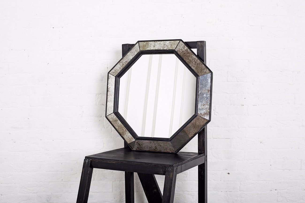 Зеркало венецианское восьмиугольное черное в состаренной раме Black Swan купить в Барнауле цена 21 000 руб.